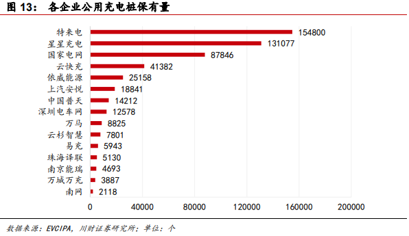 运营行业,经过数年大幅度洗牌,仅有少量企业脱颖而出,随着未来电动车保有量的提升,盈利能力将继续改善。据川财证券研报整理,目前充电桩保有量前八家的企业分别为特来电(母公司为特锐德)、星星充电、国家电网、云快充、依威能源、上汽安悦、中国普天、深圳车电网。川财证券表示,运营企业有望享受到全行业加速建桩的红利,关注相关标的:特锐德。